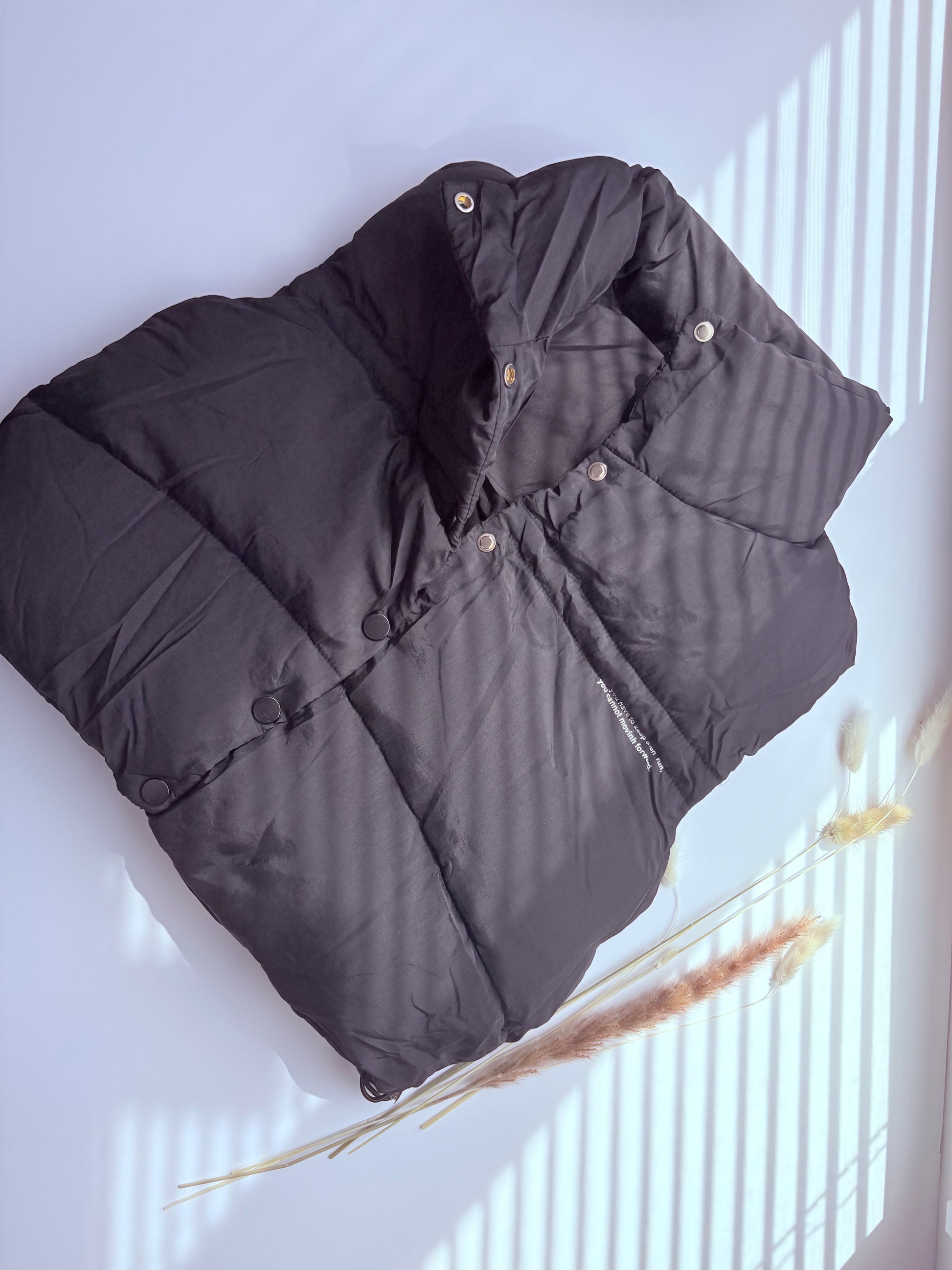 ふっくらとしたシルエットとハイネックデザインで、冷たい風からしっかりガード。