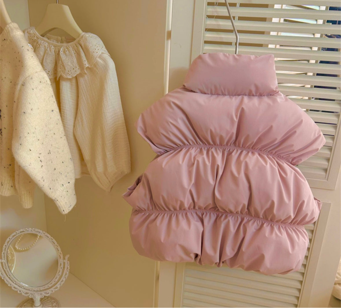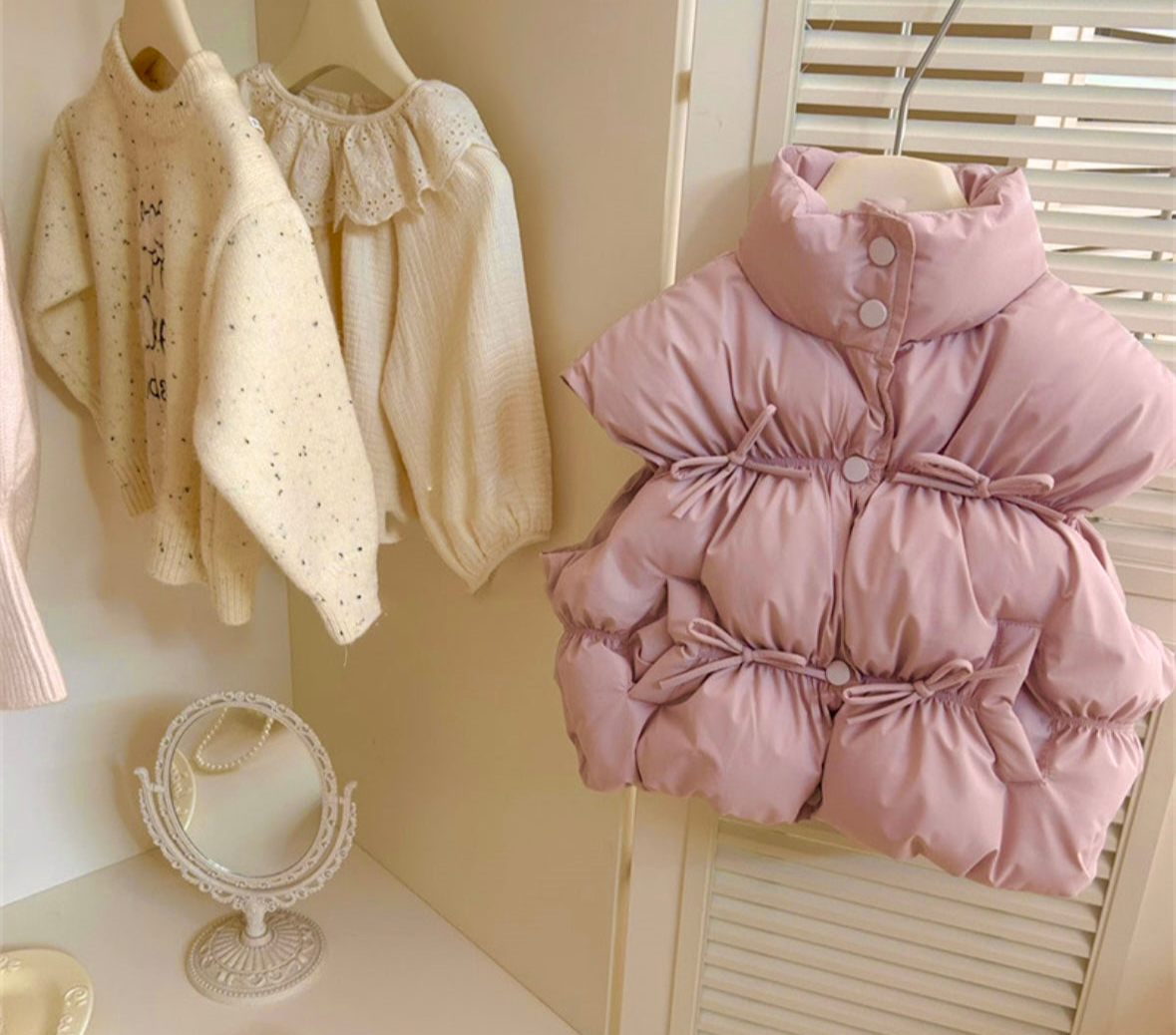 - ふんわりシルエットとウエストのリボンがかわいいダウン風ベスト。 軽くて動きやすく、秋冬のお出かけにぴったりです。 ナチュラルな色味で、いつものコーデをぐっと華やかにしてくれます。