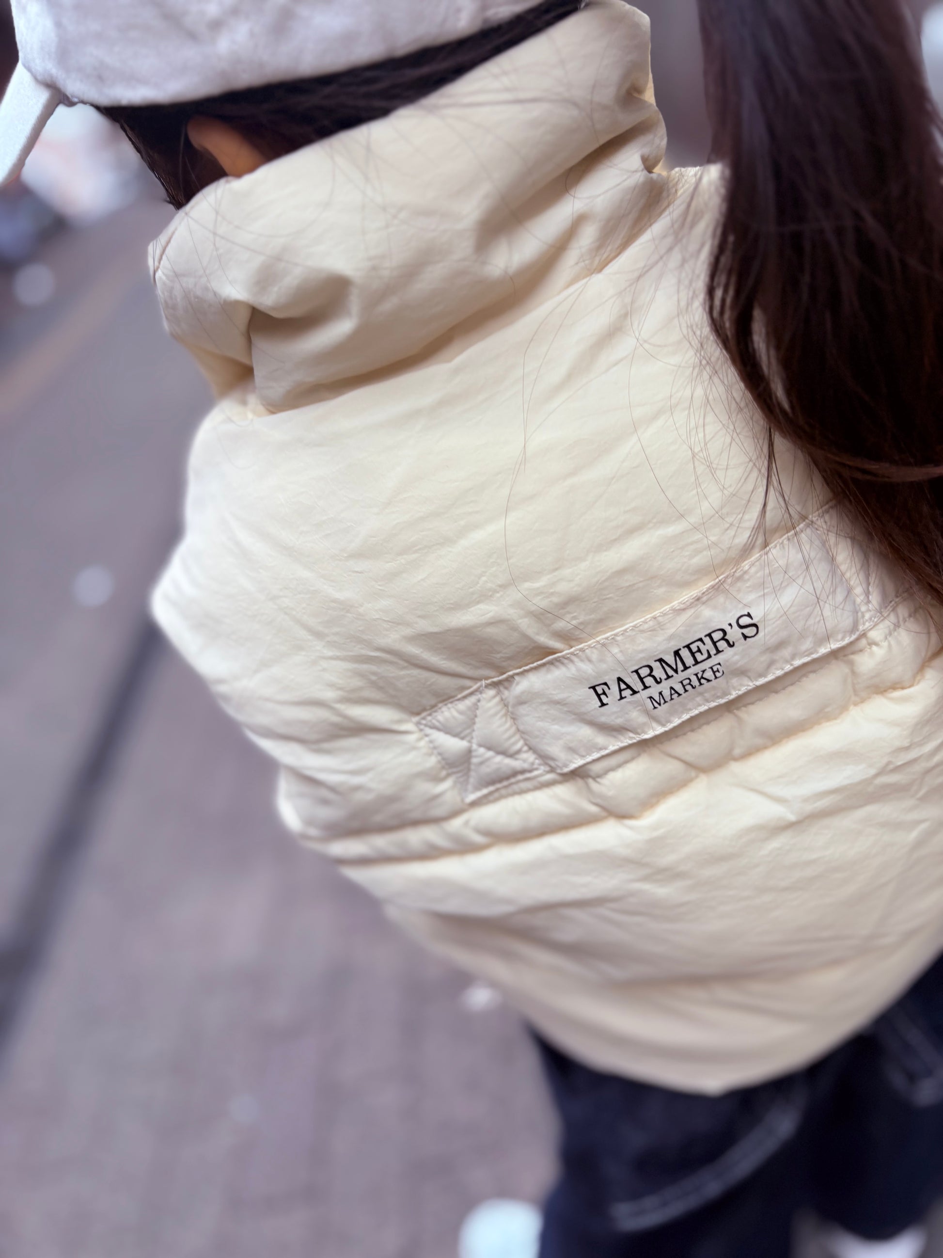 ふっくらとしたシルエットとハイネックデザインで、冷たい風からしっかりガード。
