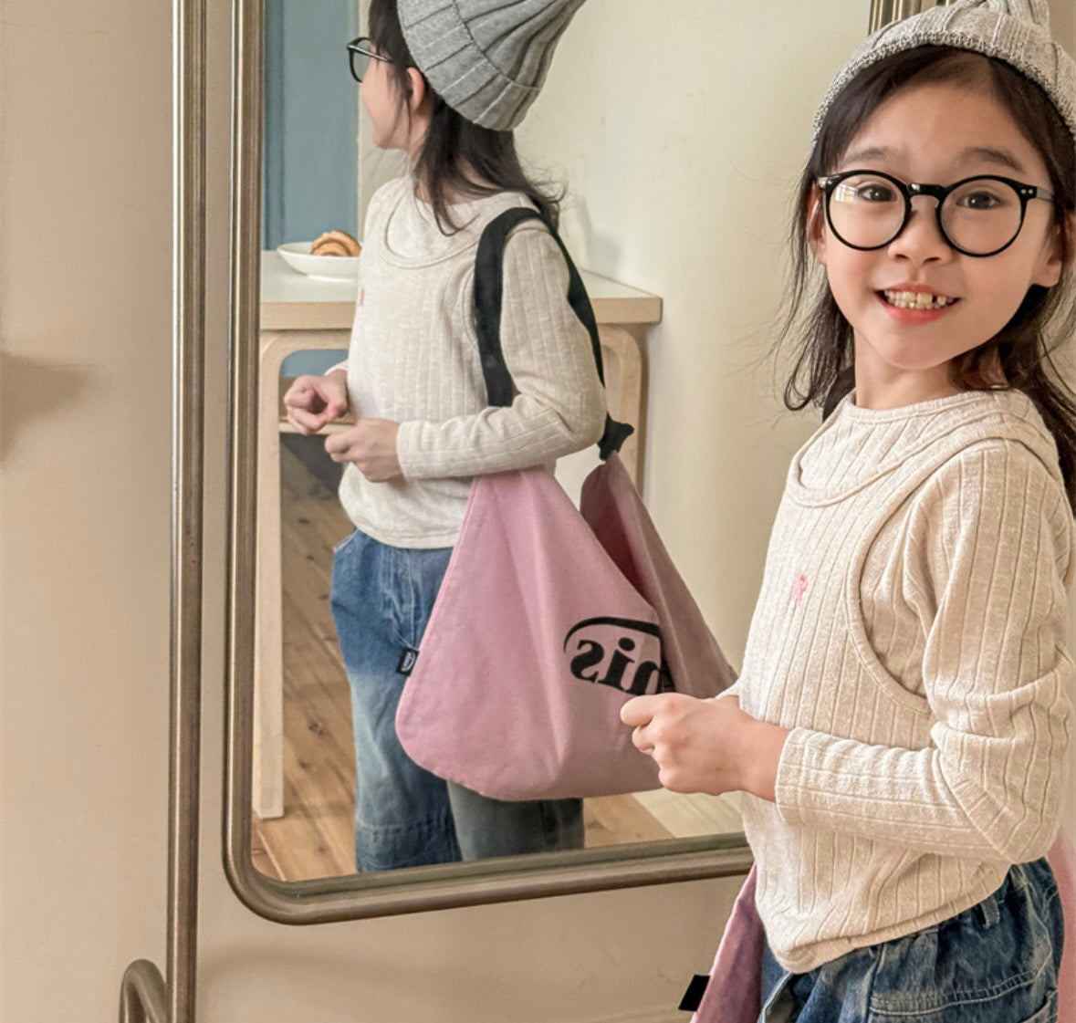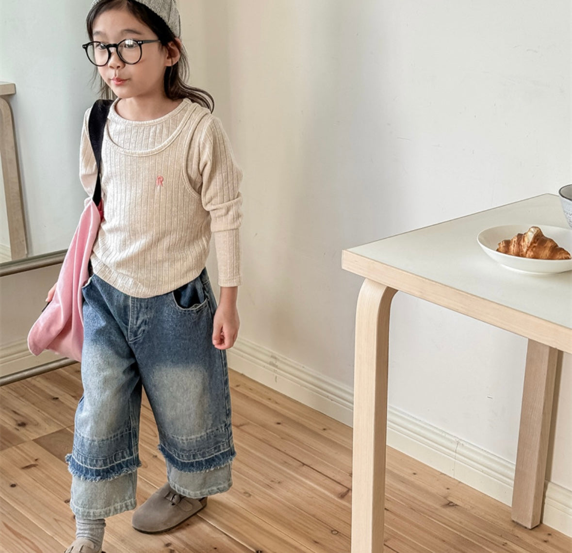 パンツやスカート、オーバーオールなど幅広いアイテムと合わせやすく、重ね着にも活躍します。